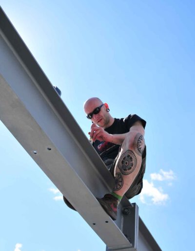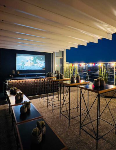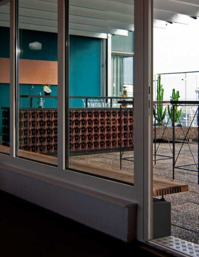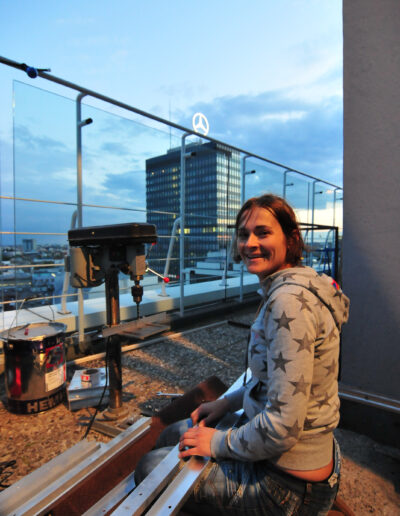 So gab es in Frühjahr 2022 nach 10 Jahren ein Wiedersehen. Alle geplanten und größtenteils auch hergestellten Objekte aus den Jahren 2008 bis 2012 waren noch funktionstüchtig. Allerdings nach hunderten von Veranstaltungen und der Einwirkung von Wind und Wetter, vor allem im Außenbereich, offenbarte sich erheblicher Sanierungsbedarf. Bald wurde ich mit der Renovierung der Objekte auf der Dachterrasse beauftragt. Aber auch im Innenbereich der Lounge als auch Suite nagte der Zahn der Zeit.