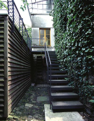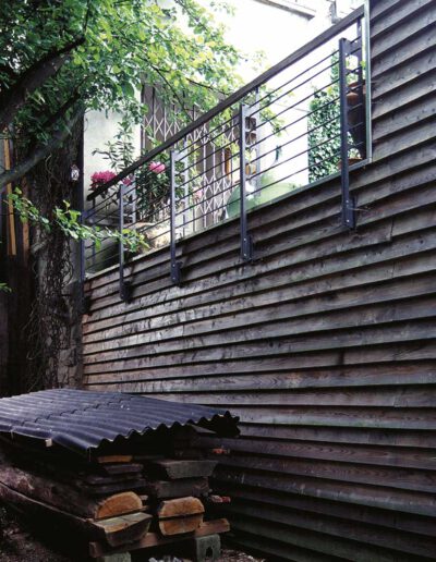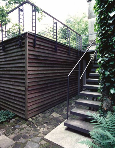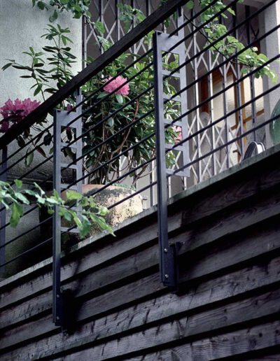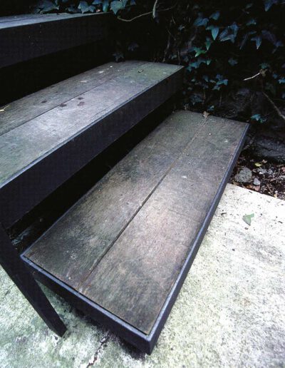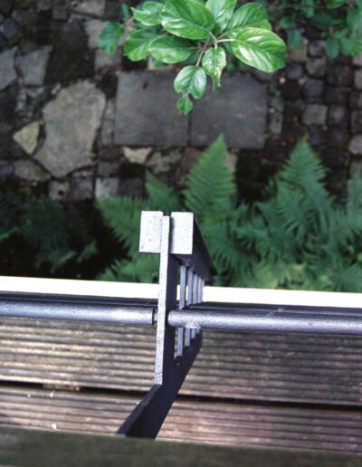 Die Eichensitzbänke die entlang der Fassade in den Fensternischen angeordnet sind wurden aufwendig instandgesetzt. Algen, Pilze und faules Holz wurden entfernt. Defekte Stellen mit flüssigem Harz aufgefüllt und verklebt. Verbogene Lamellen mit gerichtet. Abschliessend mit UV beständigem Öl mehrfach getränkt. Fertig!