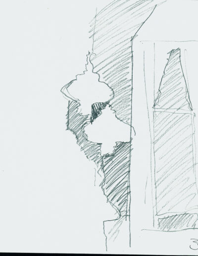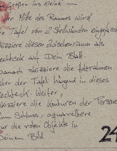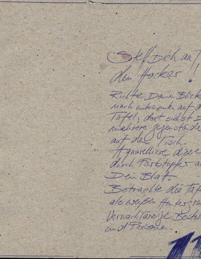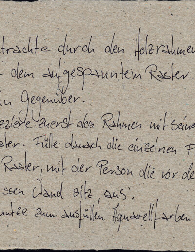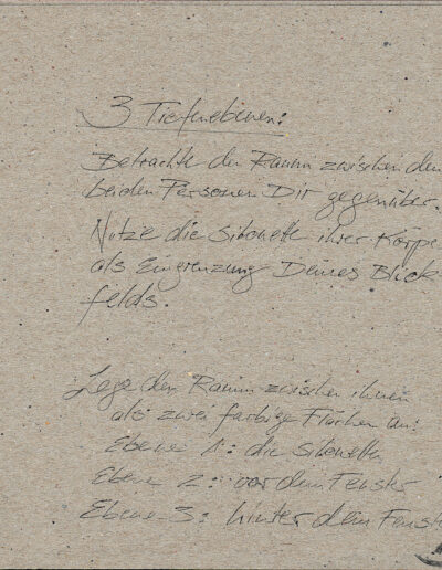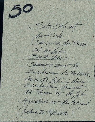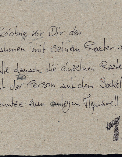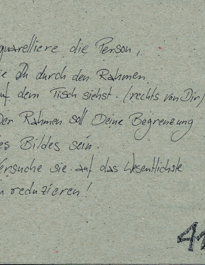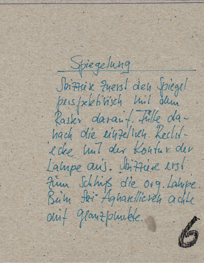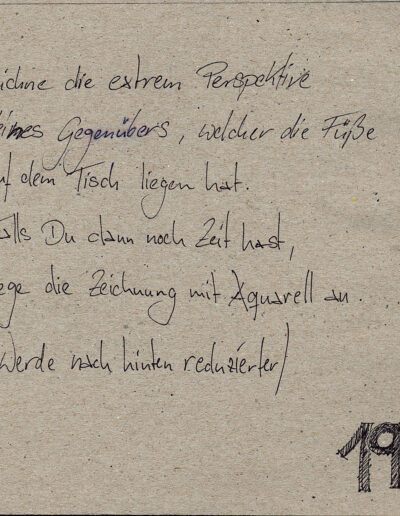 Das richtige Wahrnehem um richtig Wiederzugeben war unser Ansatz. Mit Mitteln der Irritation und Ablenkung sollte „Beim Sehen das Denken abgewöhnt werden“! Denn bekanntermaßen sehen wir den Raum auf unserer Netzhaut zweidimensional. Doch zur Orientierung bewerten wir auch ständig was wir sehen und es fällt uns oft schwer das Gesehene auf einer Zeichnungen richtig wiederzugeben.