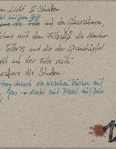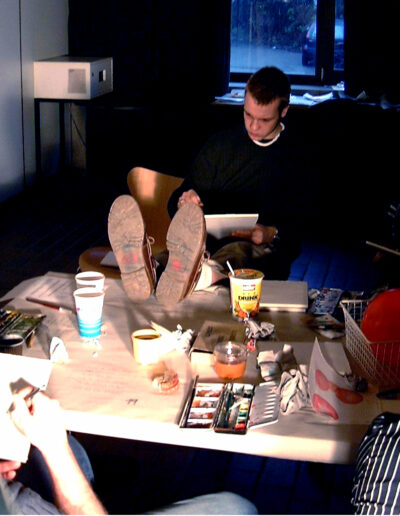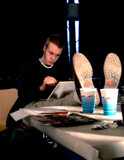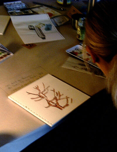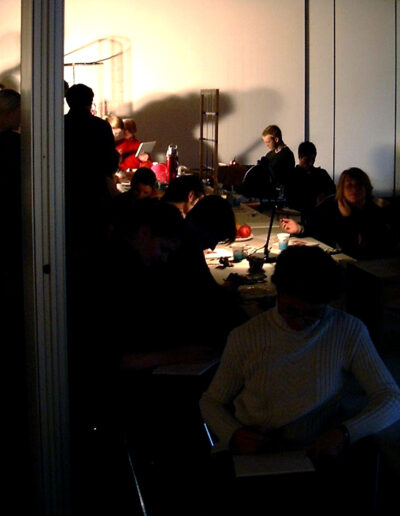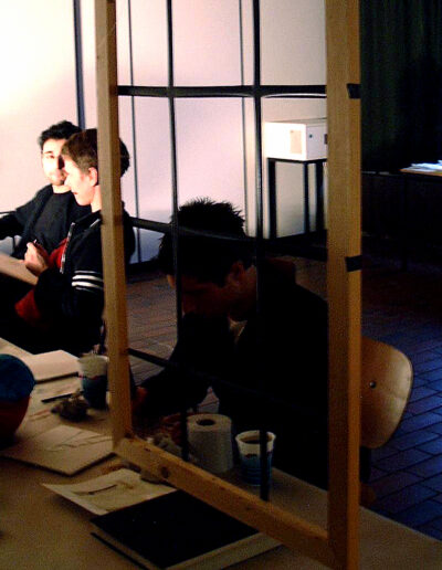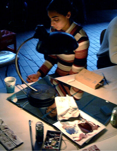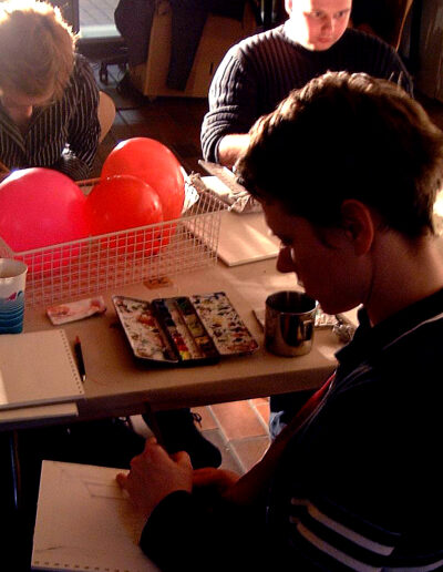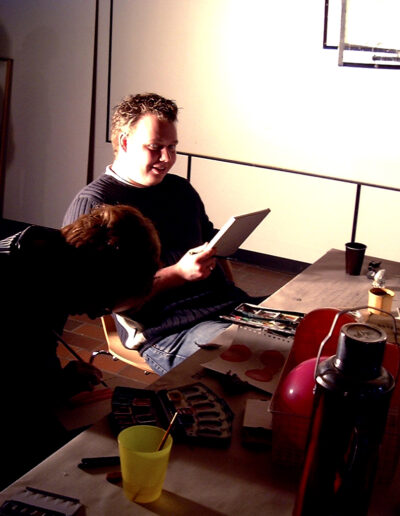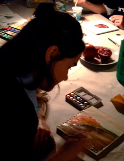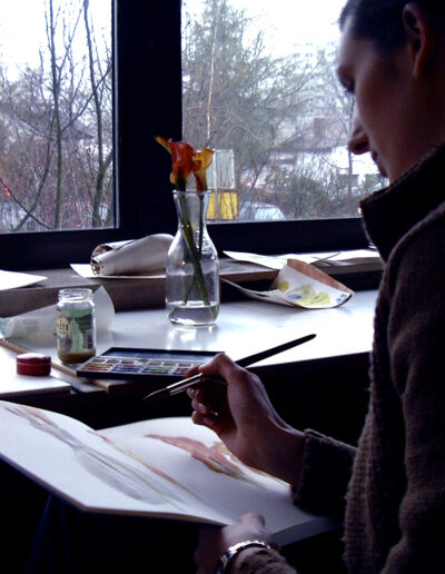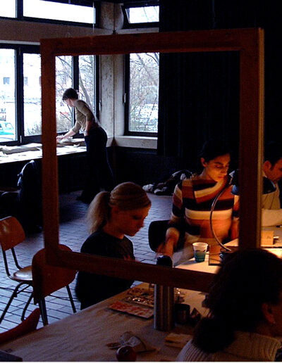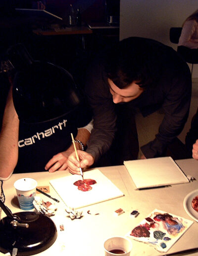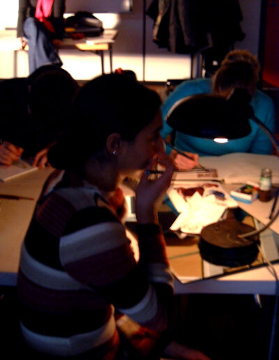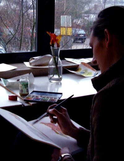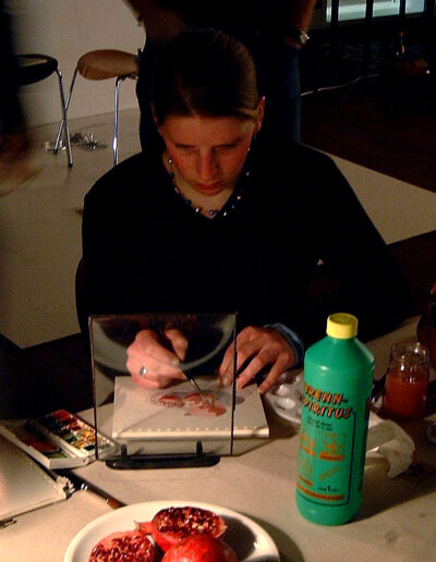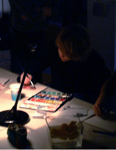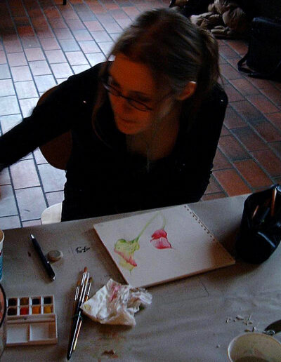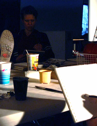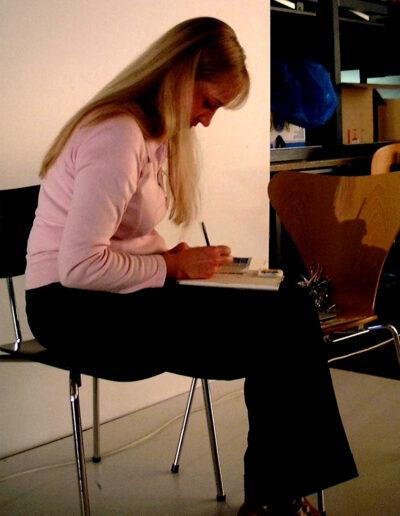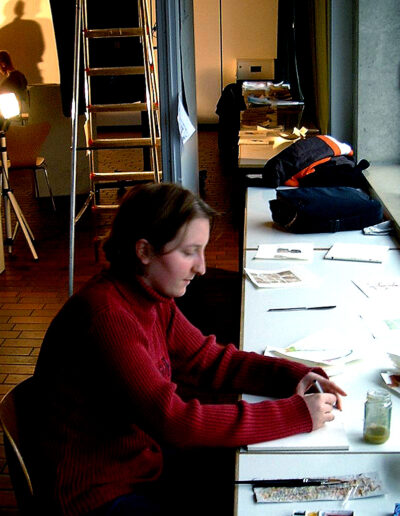 Im Januar 2003 wurde ich gemeinsam mit meiner früheren Komolitonin Sandra Bruns mit einem ganztägigen Zeichen- und Aquarellworkshop für das 1. Semester engagiert. Wir durften gemeinsam mit 60 Studenten unseren Lehransatz einer „Intensiven Wahrnehmungsschule“ in Form eines ganztätigen Workshops erproben.