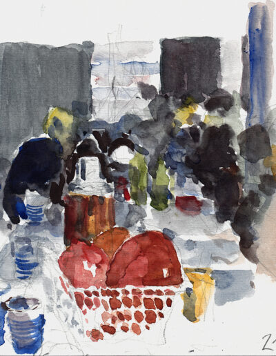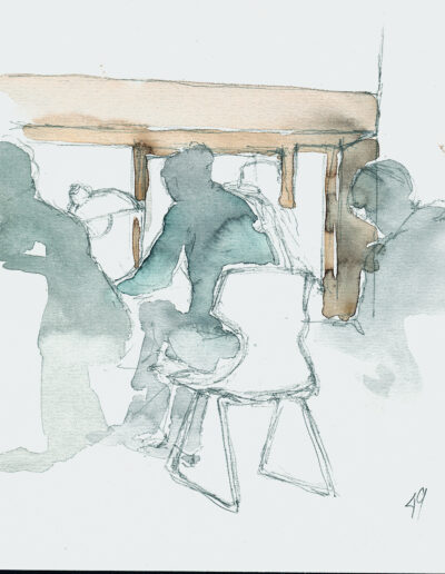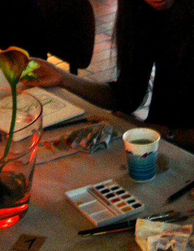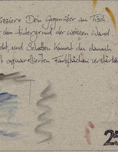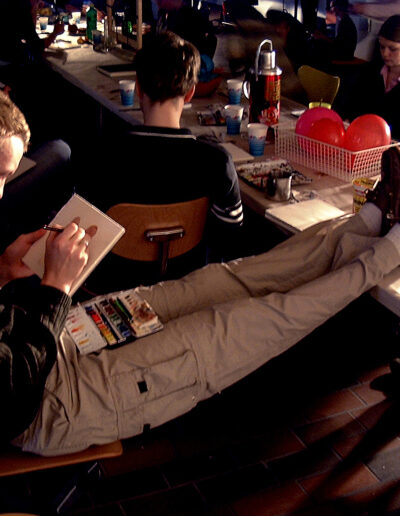 Wir hatten bereits als Tutoren im Lehrgebiet „Freies Zeichnen“ bei Prof. Ernst Thevis sowie „Farbgestaltung“ bei Prof. Kessler Lehrerfahrungen sammeln können und wollten nun unsere eigene Vorstellung das Zeichnen und Aquarellieren zu vermitteln umsetzen.