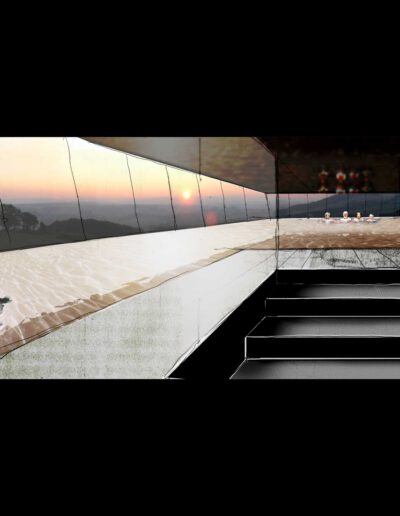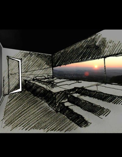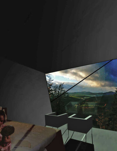Hierfür wird der einzigartige Naturstandort frei gewählt und das natürliche Wasservorkommen für das Bad und der traumhafte Ausblick für das Hotel genutzt.