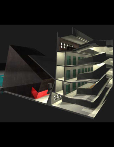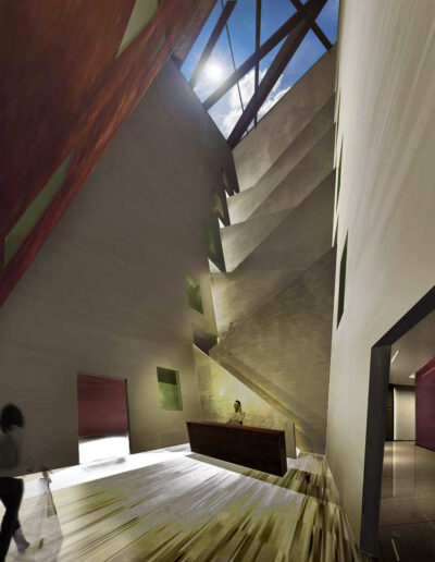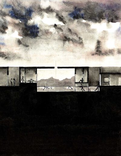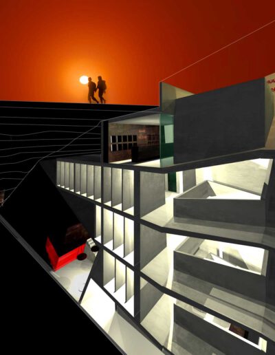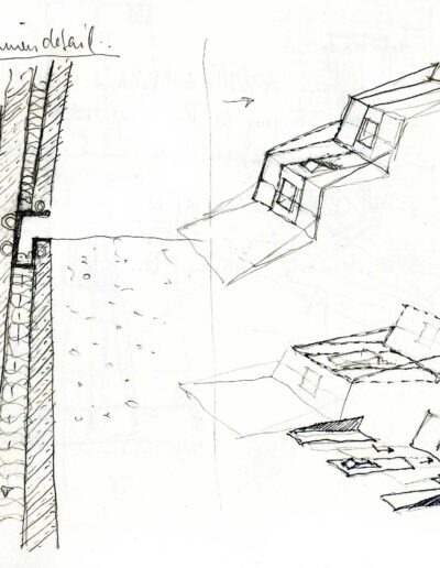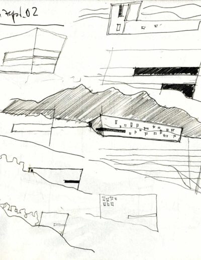 Die Formgebung der gebauten Räume wird dabei aus den geologisch, topographischen Besonderheiten der Landschaft und den zeitgeistlich kulturellen Erungenschaften der Gesellschaft abgeleitet.