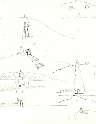1. Die Baukörperform des Hotels steht ebenfalls im bildhauerischen Dialog mit der Landschaft und korrespondiert mit dem Bade- haus.