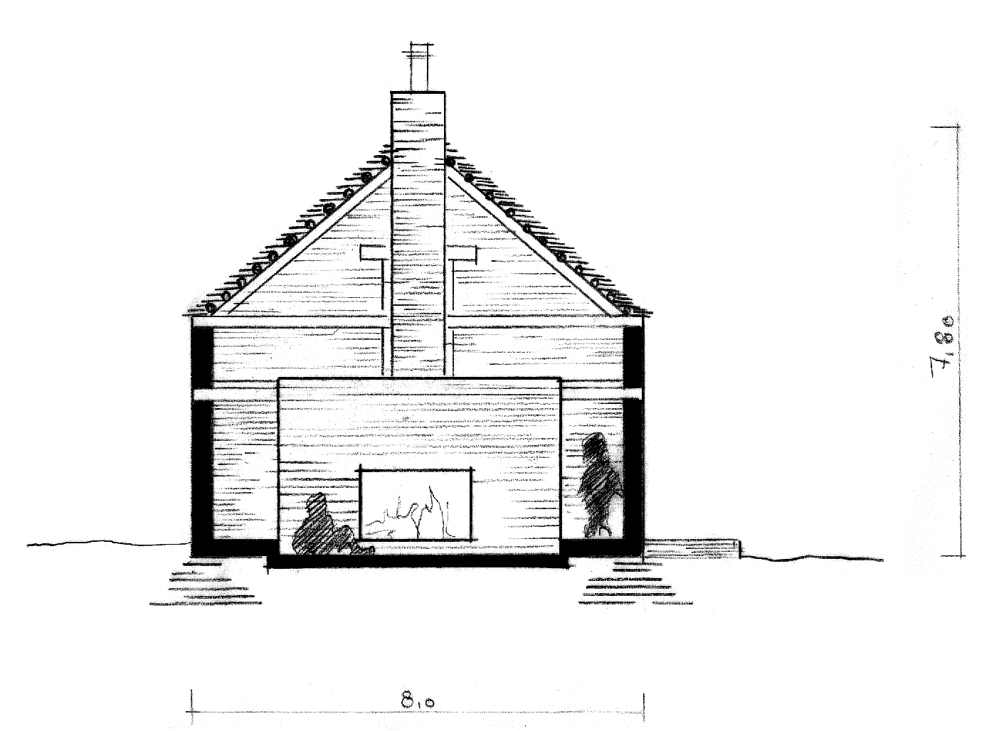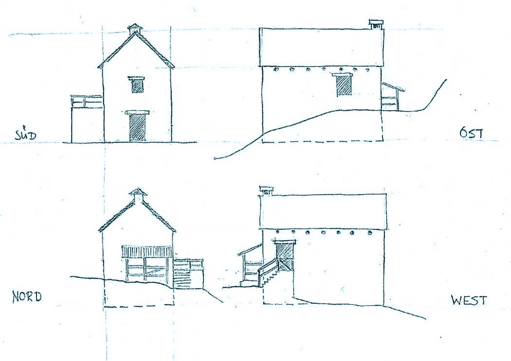 Das rechte hintere Haus ist sehr klein, ca. 5 x 4 m und diente eventuell als Wirtschaftsgebäude, Käserei oder ähnlichem.