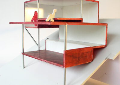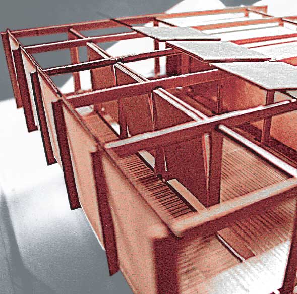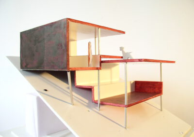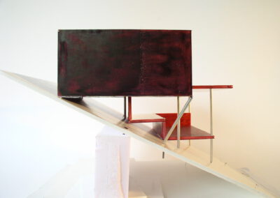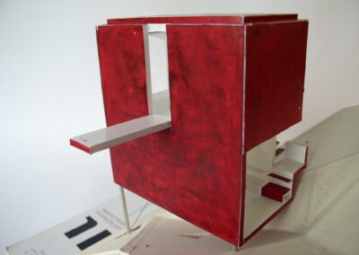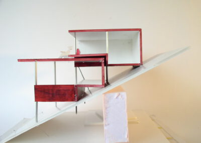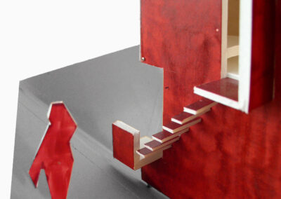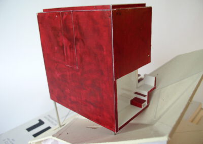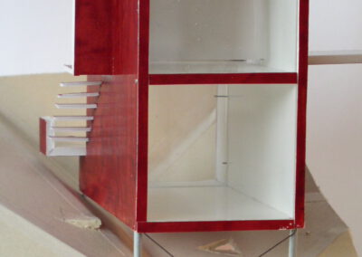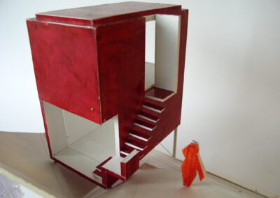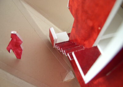 Um die Häuser herum enstehen virtuose Treppengebilde, die den Häusern ihre unverwechselbare Gestalt verleihen. Für die neuen Unterkünfte gilt Gleiches: übereinander gestapelte Raumzellen werden von aussen durch gestaltverleihende Treppen erschlossen. Somit wird die“virtuoseTreppe“ zum zentralen Gestaltungsmotiv für die Miniaturhäuser.