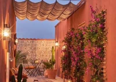 In Städten mit meist mehr als 5 Geschossen sind solche Struktur auch als Dachhöfe oder in Form von eingeschobenen Loggien denkbar. Entscheidend ist eine verschachtelte Bauweise die genügend Luft und Licht hineinlässt und zugleich einen geschützten Außenraum herstellt.