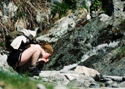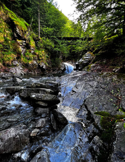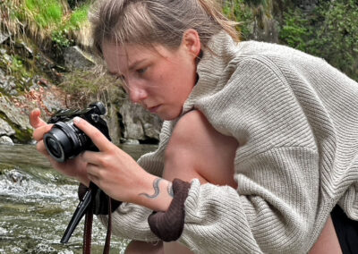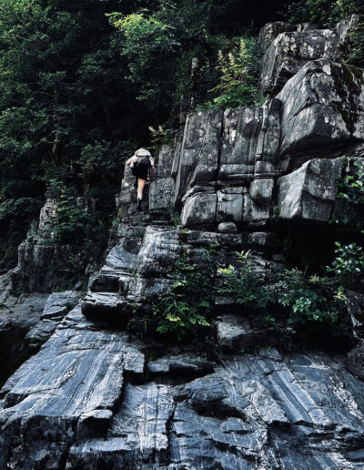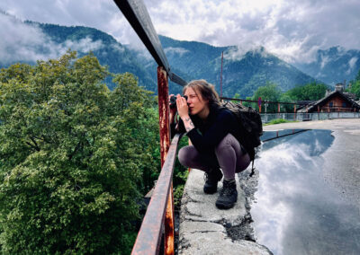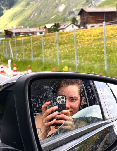 Gemeinsam mit meiner Tochter Liv entdeckte ich im Frühjahr 2022 das Valle Onsernone im Schweizer Kanton Tessin auf fotografische Weise neu. Das Ziel der Reise – gemeinsam eine Woche entspannen, wandern, zeichnen und fotografieren – wurde durch eine Reiseerfahrung der besonderen Art ergänzt: Wir fuhren die ca. 1.000 km von Potsdam ins Onsernonetal und zurück mit einem E-Auto. Der kleine Zoe hat bei einer Geschwindigkeit von max. 95 km/h eine Reichweite von ca. 250 km. Ist die Energie verbraucht, muss das Fahrzeug für ca. 2 ½ Stunden laden, bevor es weiter gehen kann. Das ergibt eine Durchschnittsgeschwindigkeit von ca. 50 km/h. Die Strecke kannte ich von vorherigen Fahrten und plante mit wenig Schlaf, aber einer entspannten Fahrtdauer von etwa 24 Stunden. Im Vorfeld hatten wir bereits diverse Zwischenstopps für eine angenehme Ladezeit festgelegt. Doch leider kam dann alles anders. Das Bezahlsystem an den Ladesäulen ist dermaßen uneinheitlich, dass jeder Ladevorgang zu einer Herausforderung wurde. Letztendlich dauerte die Fahrt statt 24, nun insgesamt 36 Stunden.